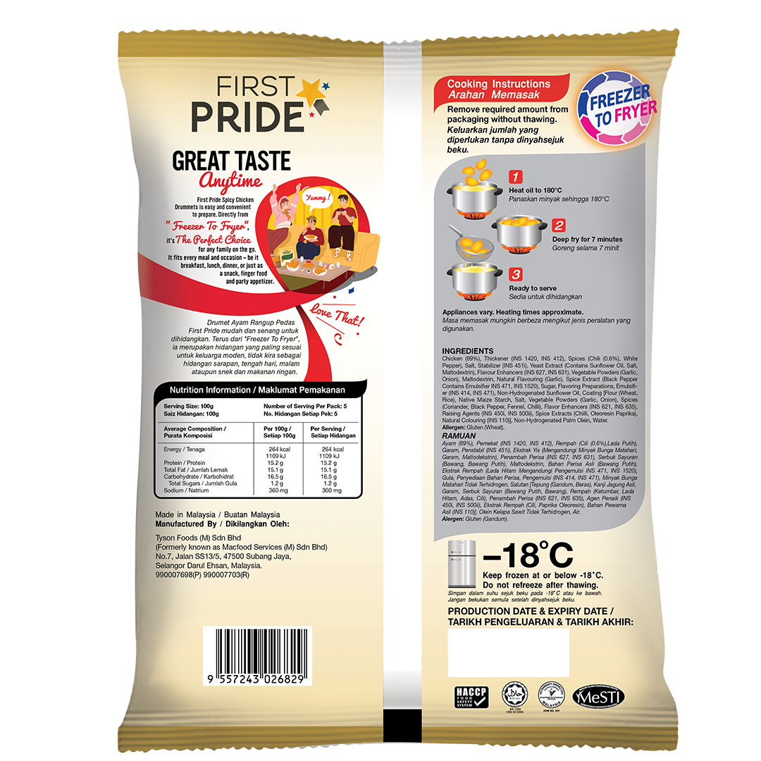Pedas berapi, penuh rasa! Drummet ini diperap dengan perapan pedas yang menyengattapi seimbang, disalut rangup di luar dan kekal berjus di dalam. Untuk yang suka makandengan kick – ini memang padu!