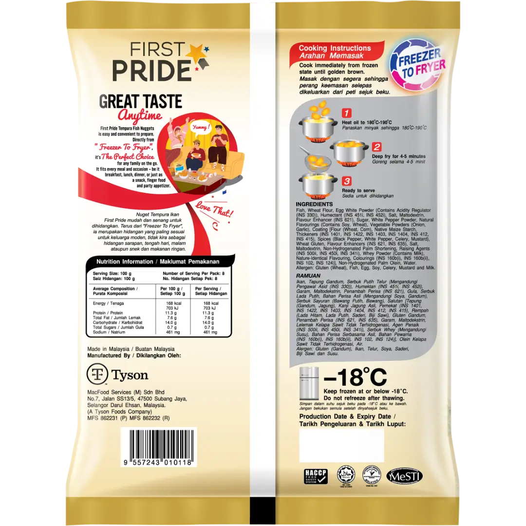 Perhatian semua penggemar makanan laut! Bersedialah untuk merasai tambahan terbaharu kepada meja makan anda - Nuget Tempura Ikan FIRST PRIDE! Adunan tempura berwarna perang keemasan memberikan kerangupan yang sempurna dalam setiap gigitan, memberi anda rasa ikan yang ringan dan menyelerakan! Sama ada anda ingin menukar rutin makan mingguan anda atau menukar makan malam anda dengan hidangan makanan laut yang lazat, FIRST PRIDE Tempura Fish Nuggets adalah pilihan yang tepat. Cubalah hari ini dan alami rasa lazat untuk diri sendiri!